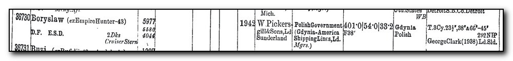 Statek pod nazwą BORYSŁAW wpisany został do Rejestru Lloyda w 1943 roku.